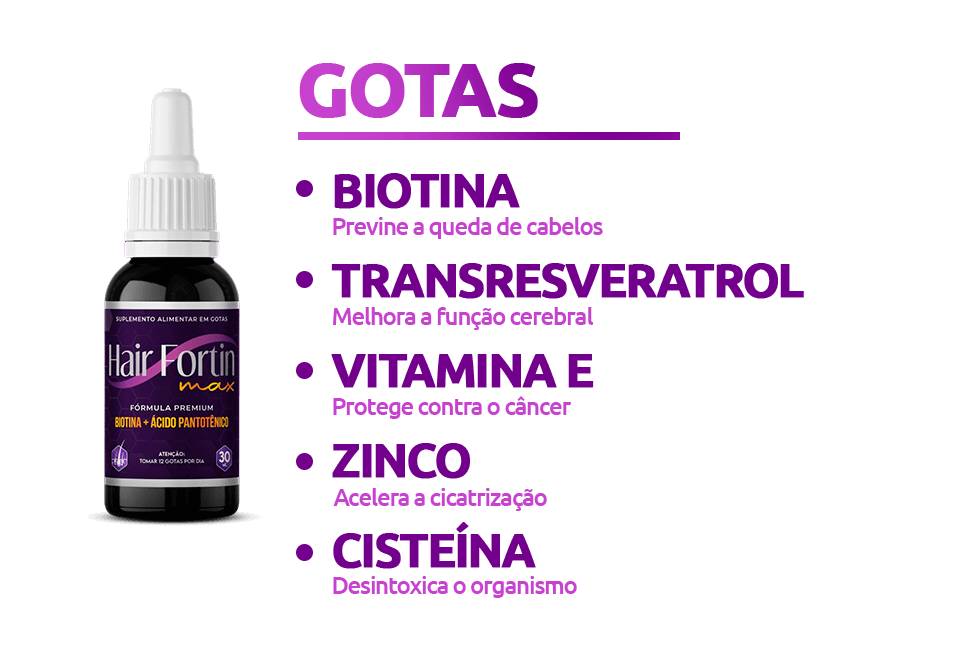 A fórmula avançada de Hair Fortin Max te devolve a saúde e beleza dos seus cabelos. Agora você não precisa sofrer para ter cabelos mais fortes, longos e brilhantes.